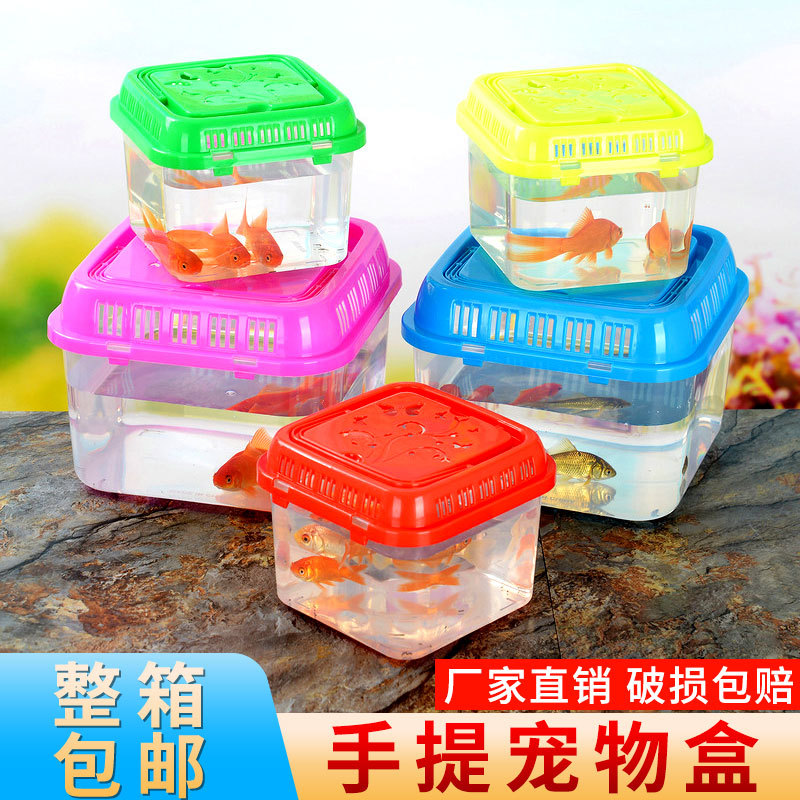 Kotak hewan peliharaan plastik portabel botol ikan tangki ikan Mini kotak kura-kura kecil kotak ikan mas kotak kios grosir