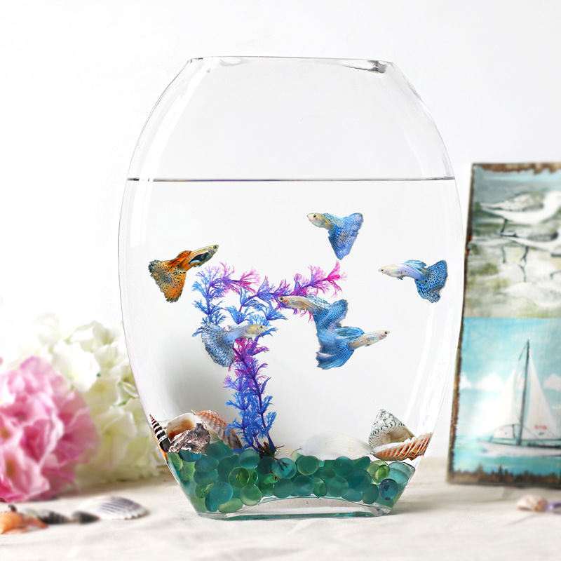 Tangki ikan dekorasi tanaman akuatik desktop pemandangan rumah ikan hias stoples ikan ember kecil ruang tamu stoples kaca ultra putih