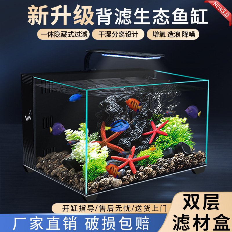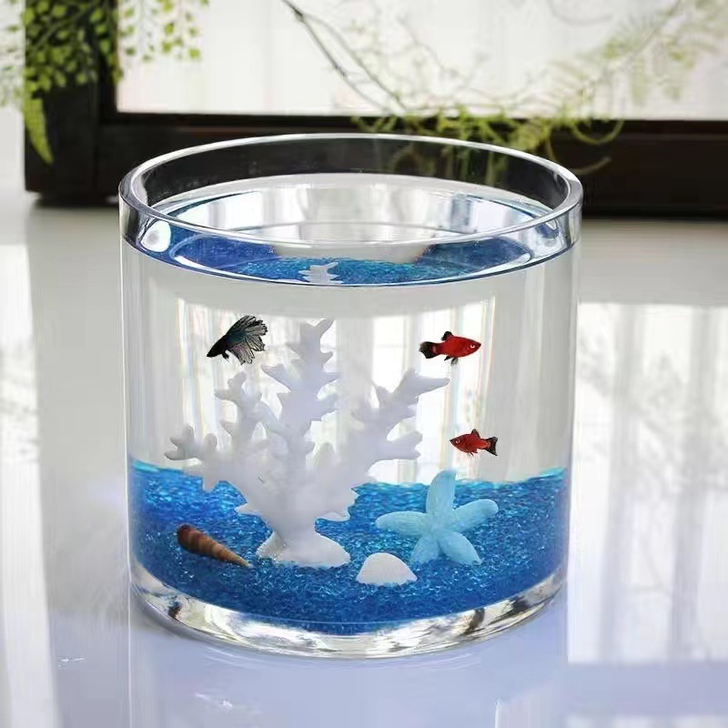 Blok bangunan tangki ikan mini asrama ruang tamu kantor desktop ekologis kecil transparan tangki Douyu kotak grosir