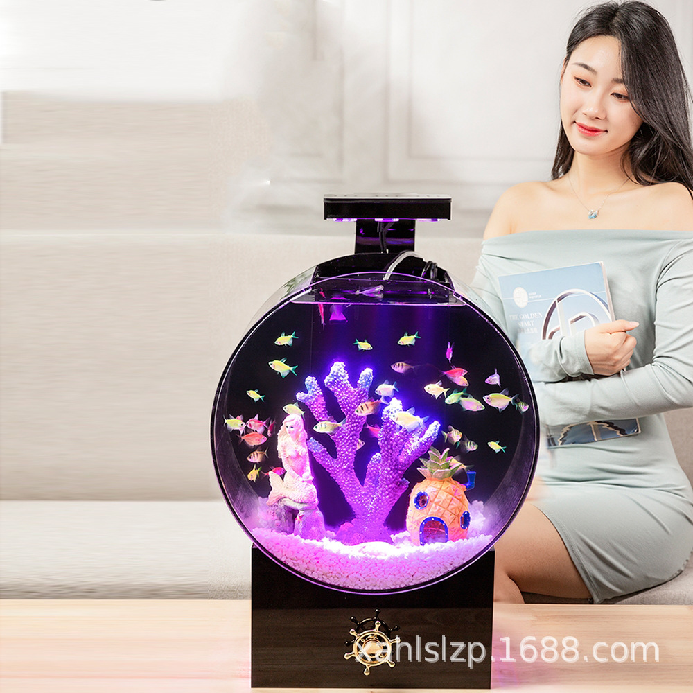 Ember kreatif tangki ikan meja akrilik filter ekologis bebas air dengan grup pemanas ringan baris isolasi khusus tangki ikan