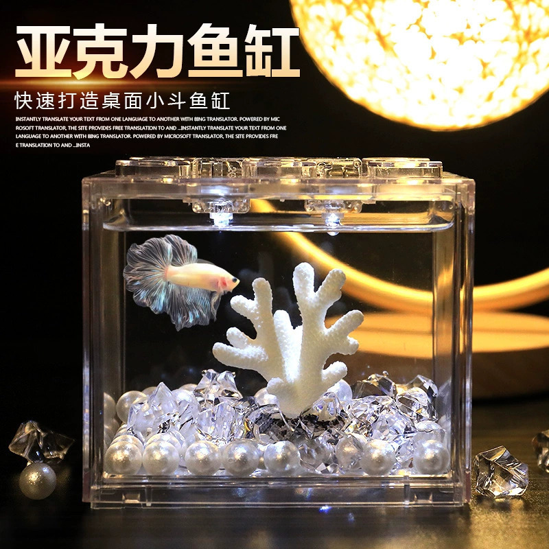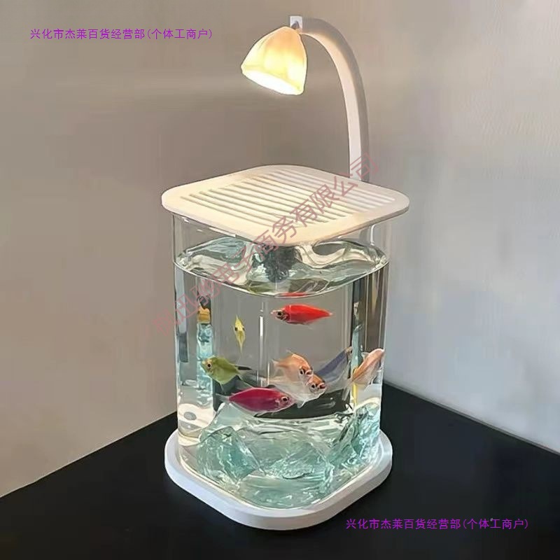 Akuarium ikan cupang super putih kecil orang malas tangki kaca ruang tamu dekorasi meja kreatif lampu hias