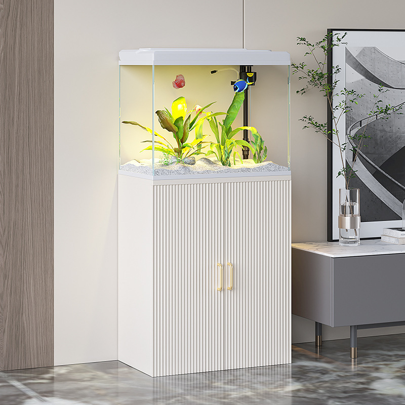 Tangki Ikan dengan Lemari Filter Rumah Mewah Ringan Ruang Tamu Kaca Ikan Emas Ukuran Kecil Kecil Kaca Rumah Tangga Tangki Ikan Pemandangan Akuarium Model Baru