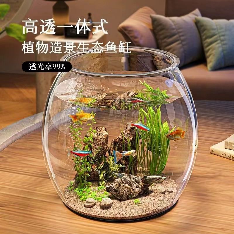 Akuarium Akuarium Ruang Tamu Self-daur Rumah Tangga Orang Malas Tanpa Ganti Air Kaca Ekologis Permukaan Meja Ikan Emas Pengganti Rambut