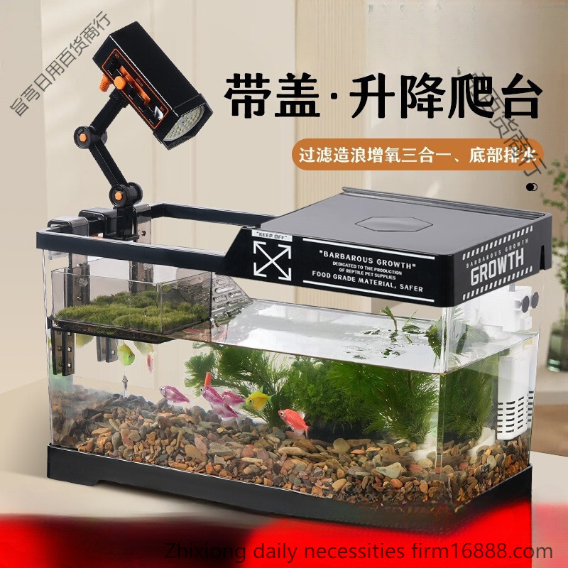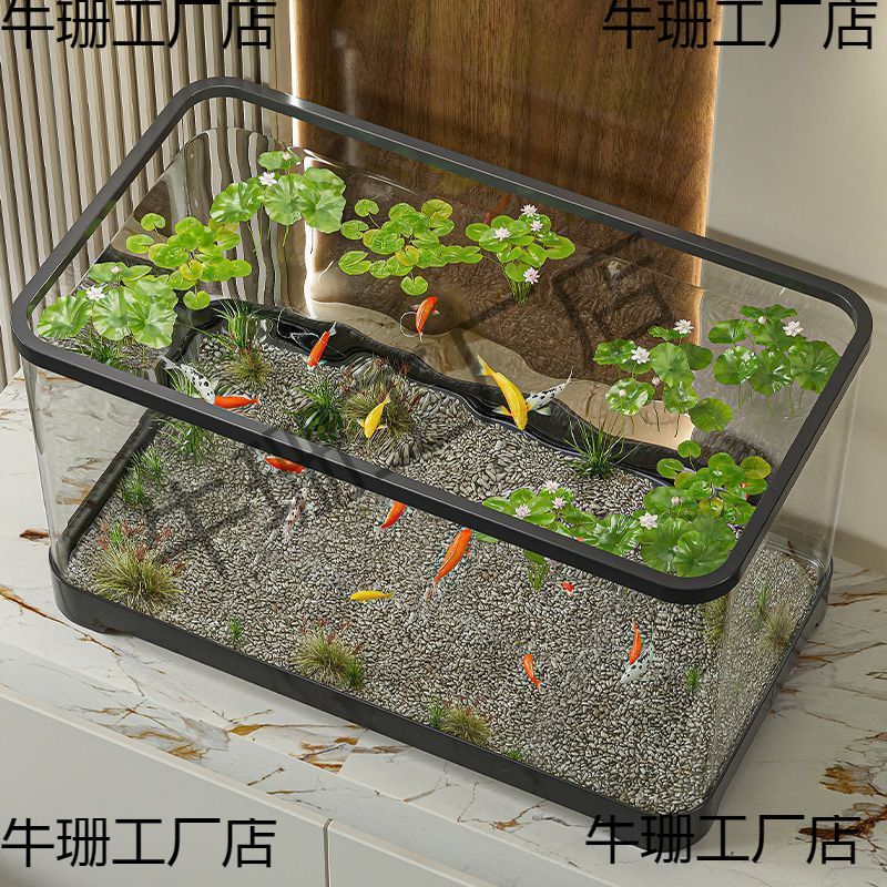 Tangki Ikan Plastik Transparan Akli Tangki Ikan Emas Ruang Tamu Tangki Ekologi Rumah Tangga Kecil Tangki Air Meja Meja Drainase Bawah