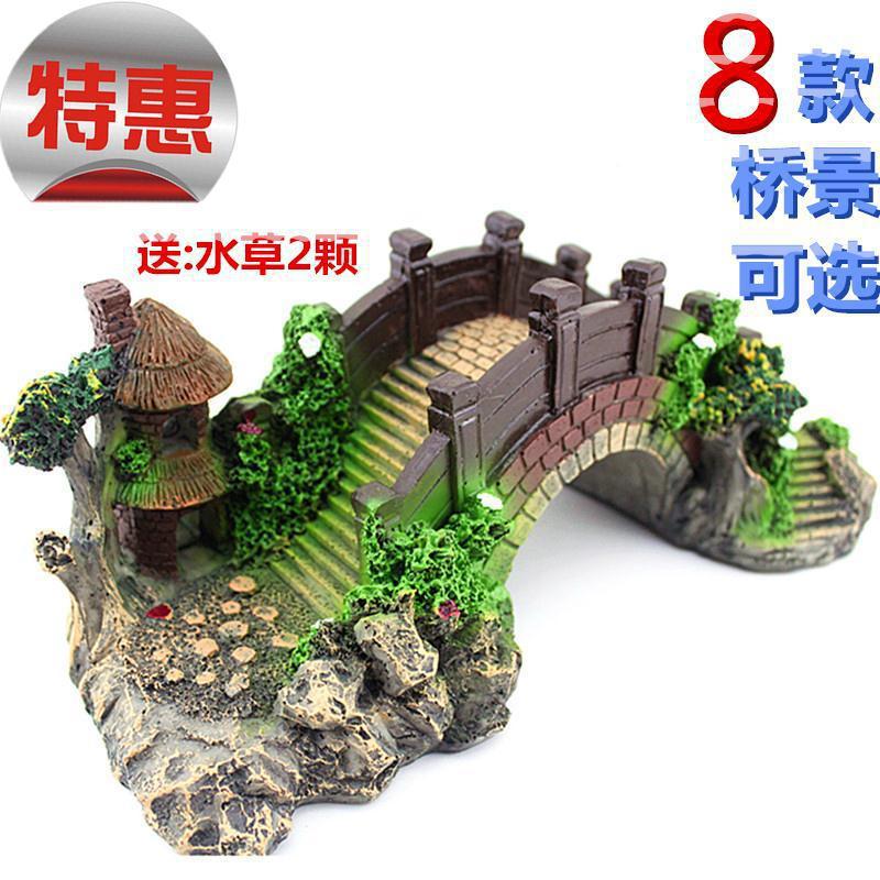 Dekorasi tangki ikan, jembatan lanskap, jembatan batu palsu, jembatan lengkung besar, latar belakang rumput air, ornamen besar