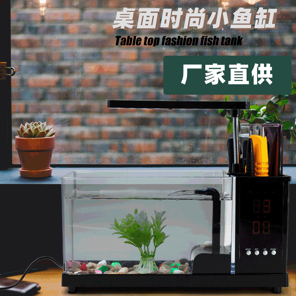 Tangki ikan renda ruang tamu kantor desktop kecil kreatif akuarium ekologis kaca rumah tangga tangki ikan