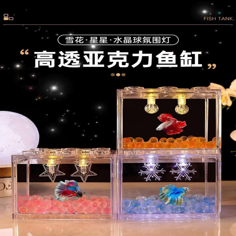 Tangki Ikan Kotak Blok Kayu Akilik Meja Rumah Tangga Kecil Ruang Tamu Tangki Ikan Ikan Murder Kreatif dengan Lampu Cocok untuk Ikan Hias