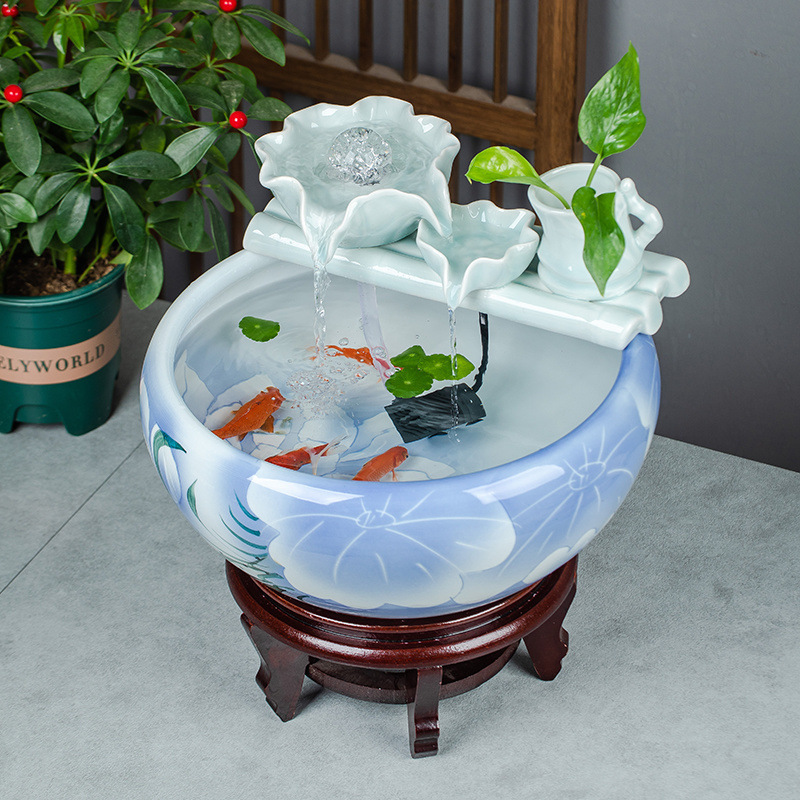 Tangki Ikan Keramik Ornamen Air Mengalir Lansekap Tangki Ikan Emas Tangki Kura-kura Tangki Hidroponik Tangki Bunga Teratai Keramik Dekorasi Ruang Tamu