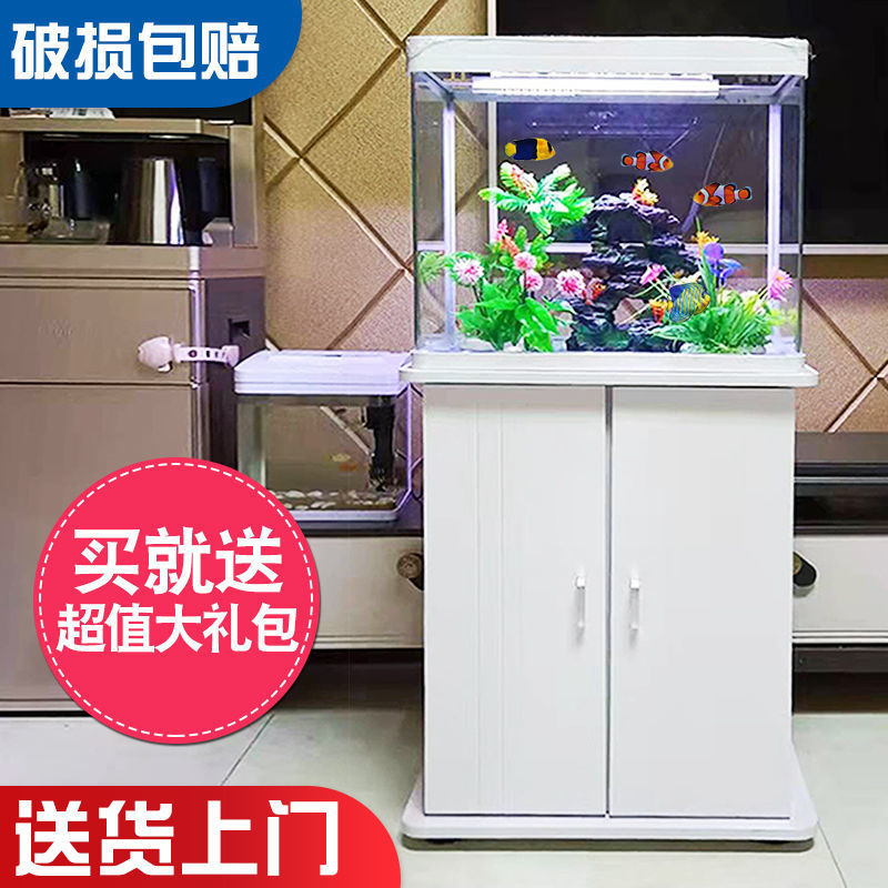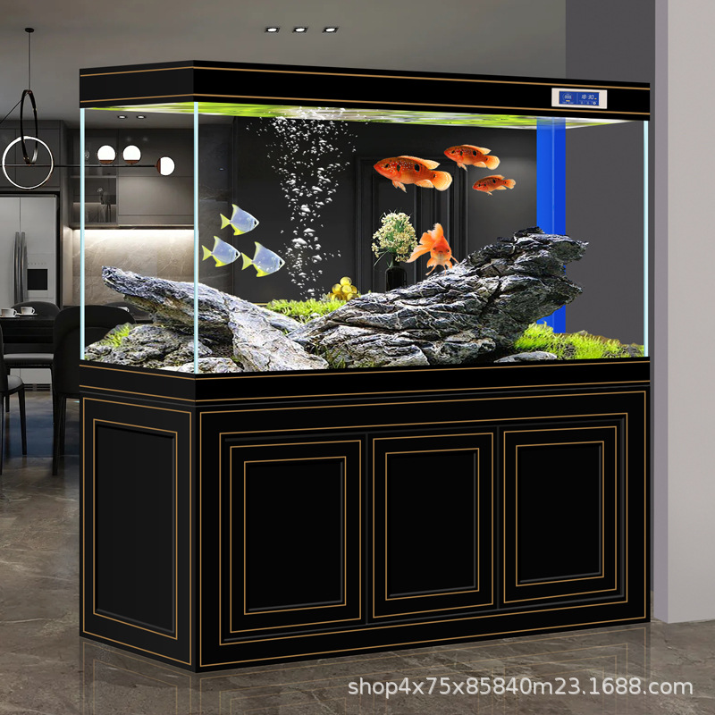 Tangki Ikan dengan Lemari Filter Rumah Mewah Ringan Ruang Tamu Kaca Ikan Emas Ukuran Kecil Kecil Kaca Rumah Tangga Tangki Ikan Pemandangan Akuarium Model Baru