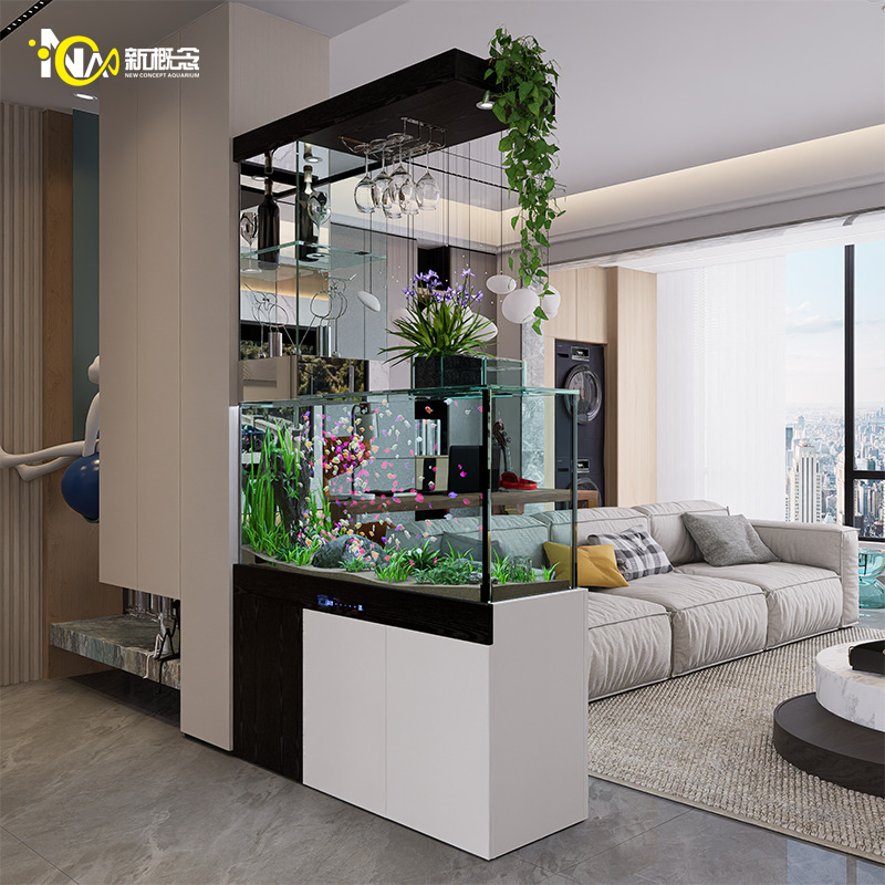 Ruang Tamu Tangki Ikan 2025 Model Baru Layar Partisi Filter Bawah Kecil Dengan Lemari Tangki Kaca Terintegrasi Akuarium