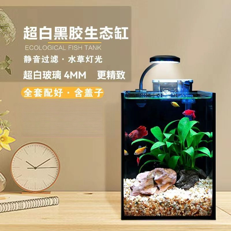 Akuarium ikan cupang super putih kecil orang malas tangki kaca ruang tamu dekorasi meja kreatif lampu hias