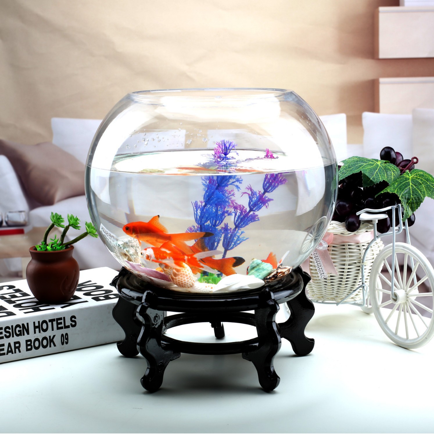 Tangki ikan kecil super transparan, tangki ikan plastik transparan bola bulat tangki ikan ruang tamu desktop rumah drop-resistant emas