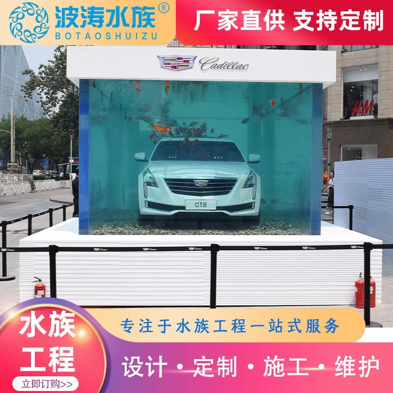 Desain Pabrik dan produksi besar akrilik transparan display pameran tangki ikan Cadillac pameran