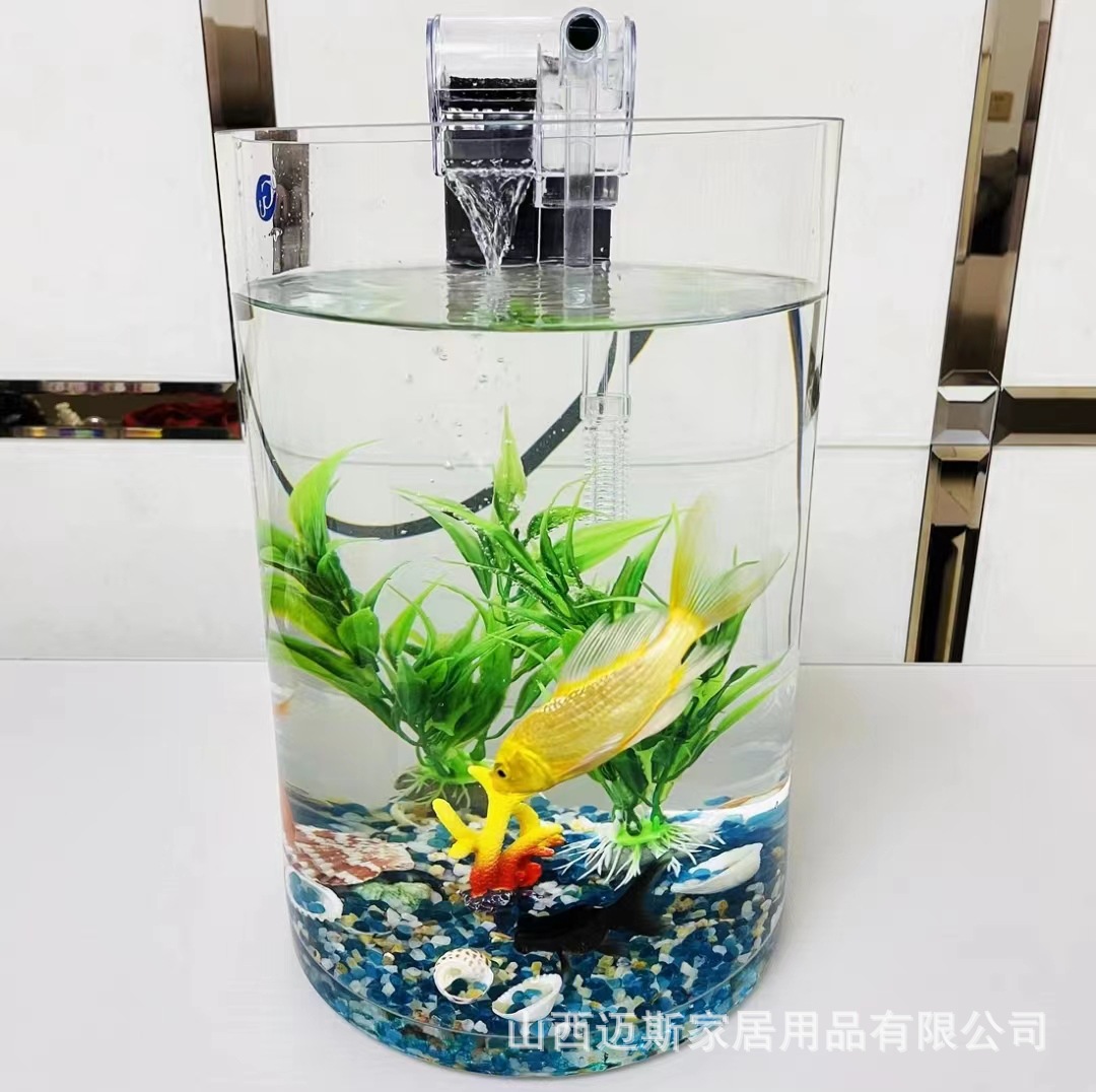Tangki ikan kaca Super putih ruang tamu kantor kamar tidur desktop kecil bebas air silinder lanskap tangki ikan mas Ekologis