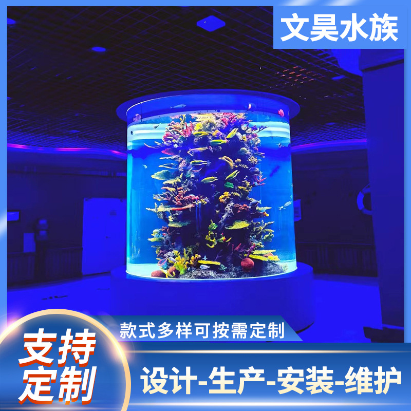 Tangki ikan silinder silinder hotel mall silinder transparan akrilik melihat ekologis akrilik besar tangki ikan