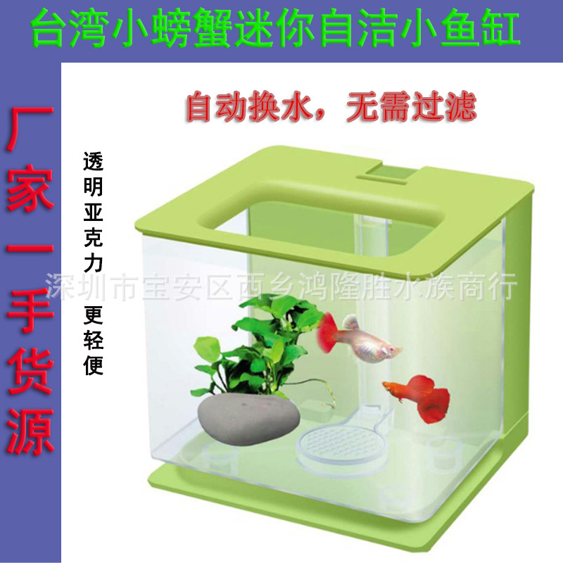 Tangki ikan kecil akrilik Mini, tangki ikan kantor transparan ember air malas plastik pembersih mandiri