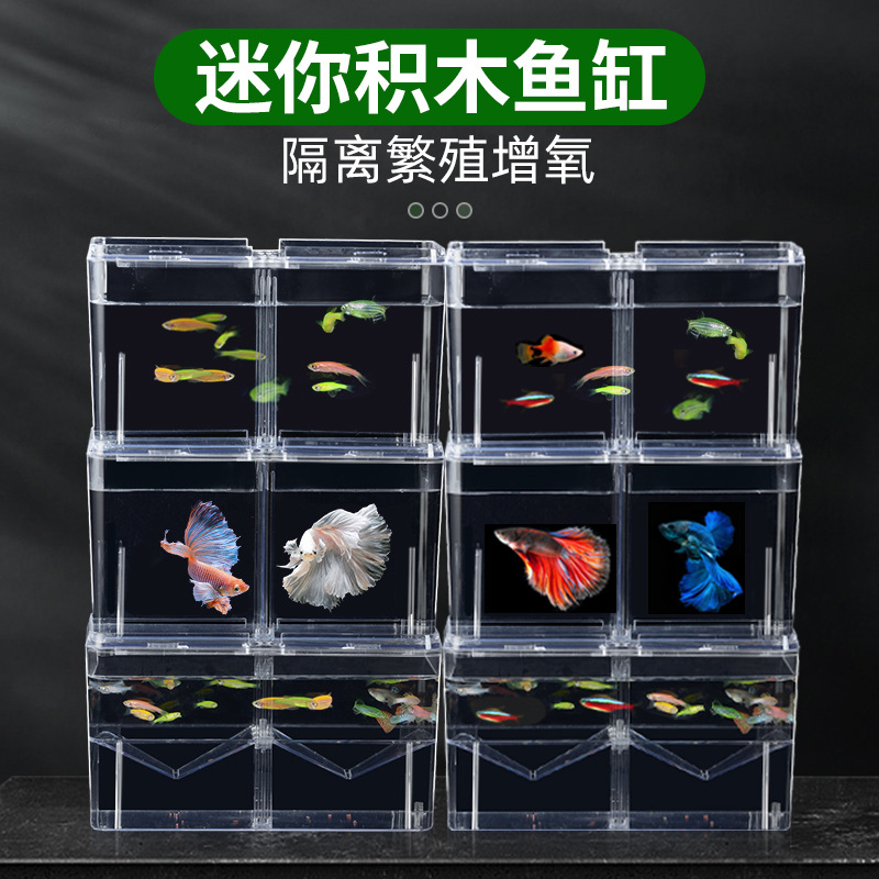 Mini tangki ikan kecil akrilik transparan blok bangunan ember tangki ikan tangki ikan desktop Kreatif lanskap plastik kotak Douyu