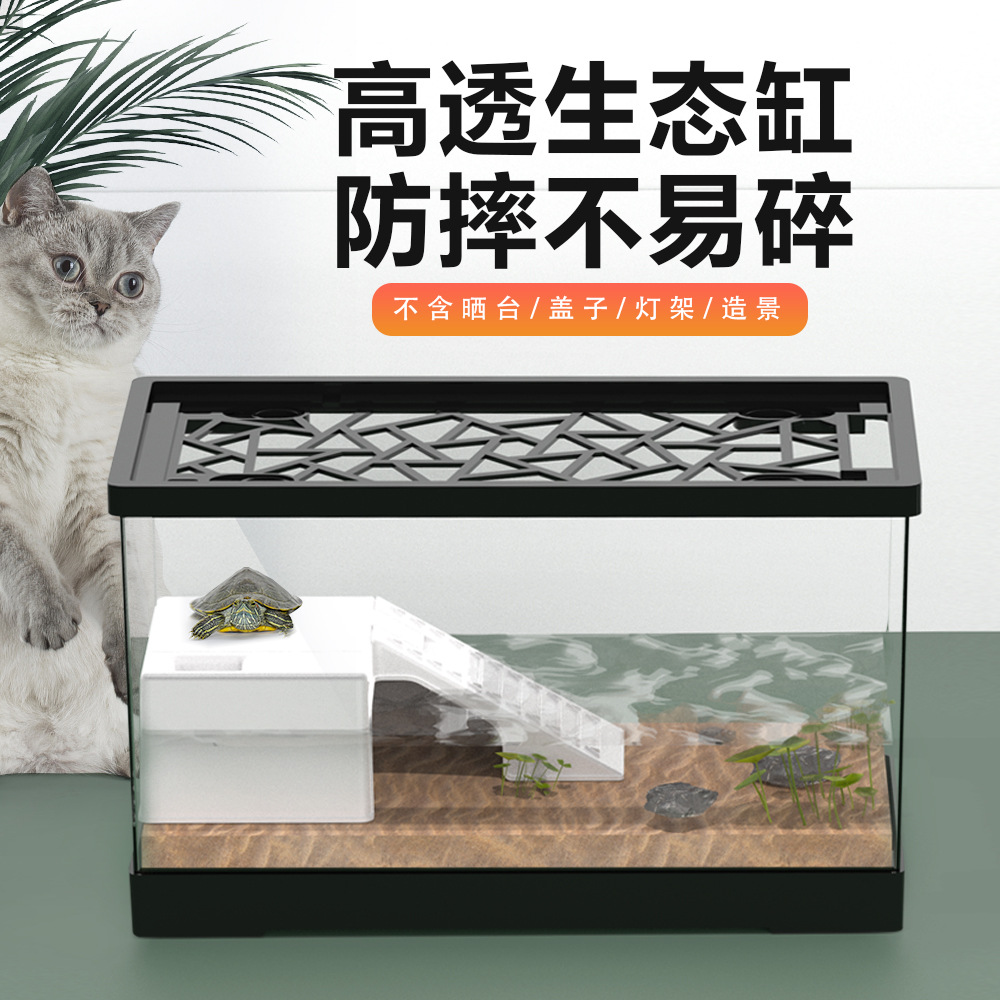 Penawaran Khusus Tangki Penyu Rumah Tangga Lansekap Model Baru dengan Meja Kering Baskom Penyu Kecil Ekologis Tangki Ikan Tangki Penyu