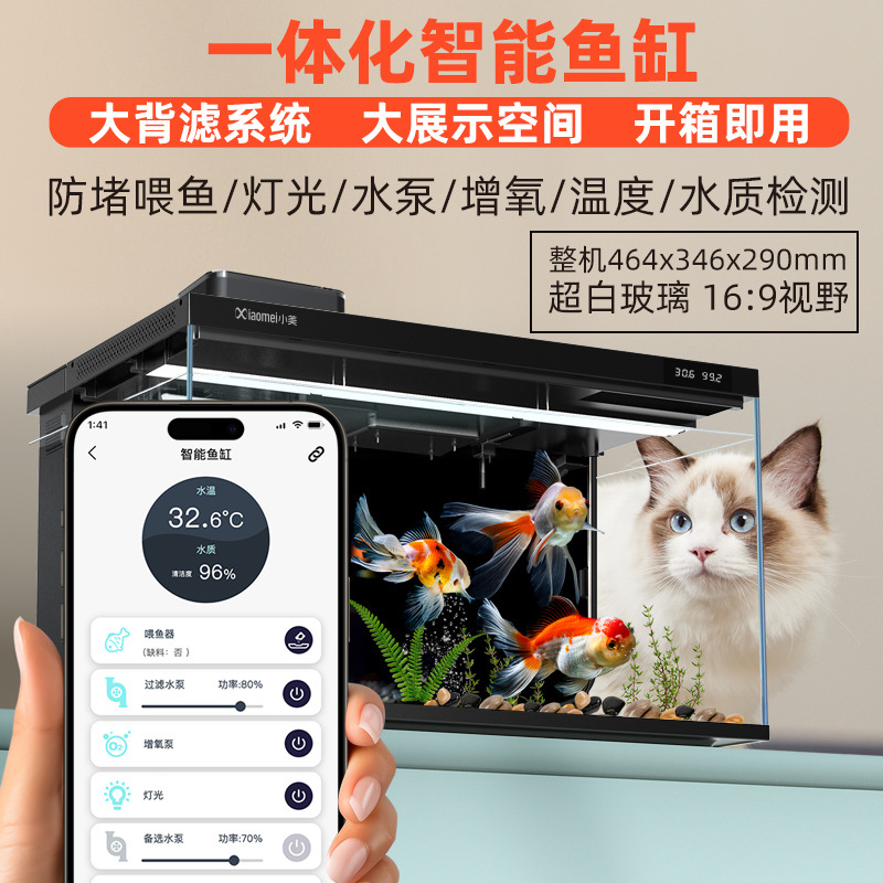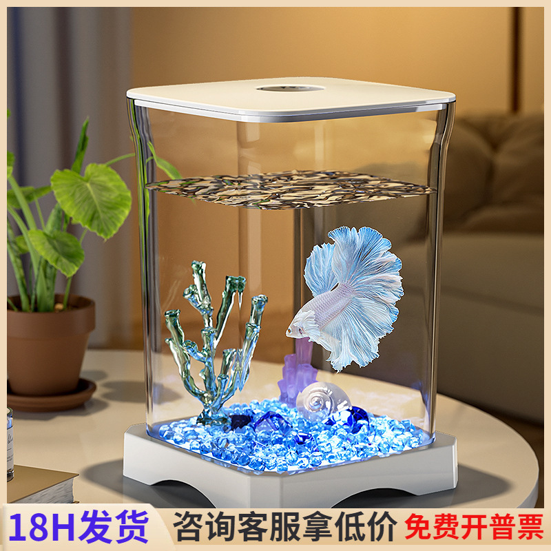 [Tangki ikan pintar] filter kecil ruang tamu lanskap melingkar terintegrasi akuarium desktop kaca super PUTIH
