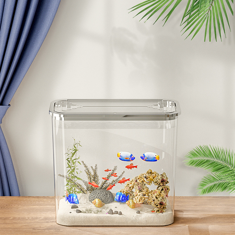 Tangki Ikan Kaca Imitasi Transparan Kecil Meja Meja Rumah Tangga Ikan Mas Kantor Mini Tangki Air Aklik Imitasi Persegi Mini