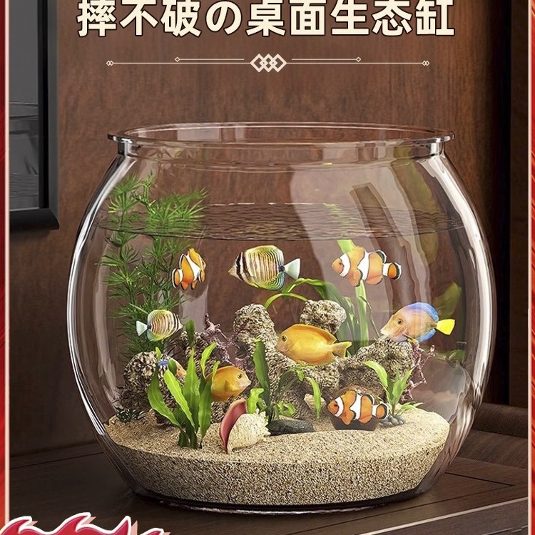 Billion Silinder Ikan Bentuk Bulat Silinder Ekologis Kecil Meja Ruang Tamu Anti Jatuh Anti Pecah Kaca Imitasi