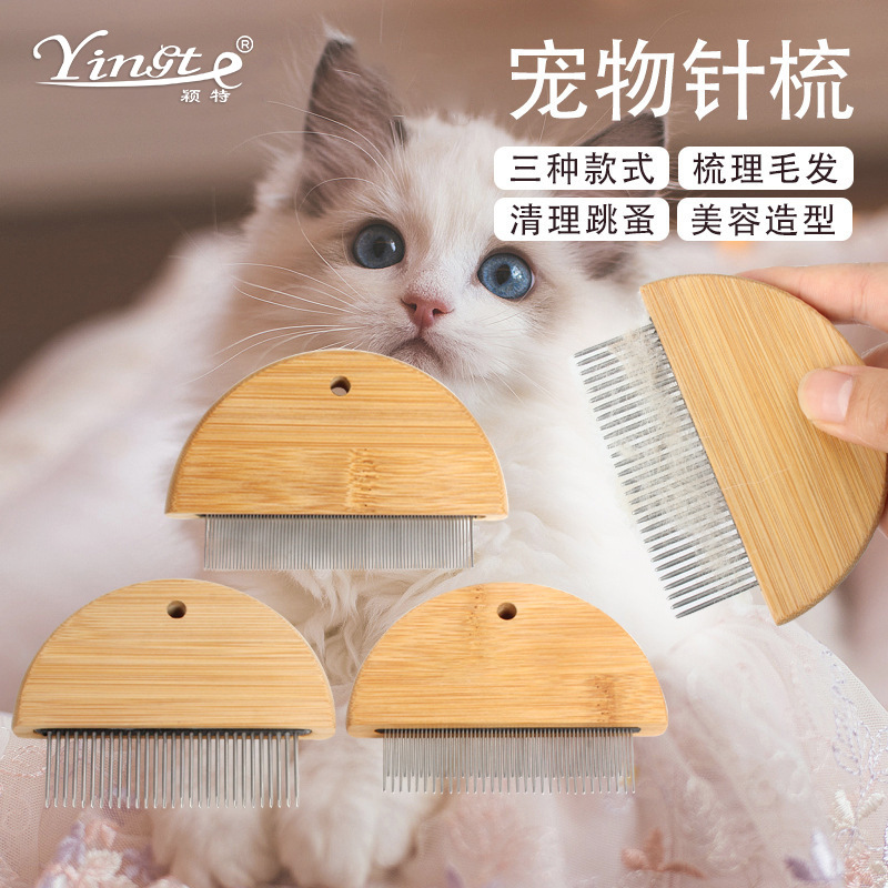 Persediaan hewan peliharaan sisir lompat hewan peliharaan sisir penghilang bulu kucing anjing sisir parut kayu kecantikan pembersihan hewan peliharaan