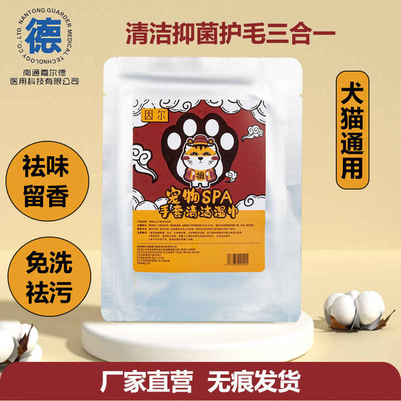 Sarung tangan sekali pakai hewan peliharaan, tisu kucing dan anjing khusus perlengkapan mandi bebas kering pembersih artefak tisu deodoran