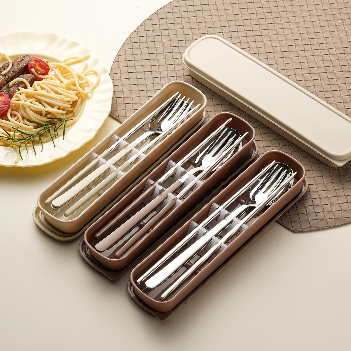 Peralatan Makan Stainless Steel Korea Set Tiga Potong Portabel Pelajar Sendok Garpu Sumpit Set Hadiah Produsen Penyimpanan Luar Ruangan