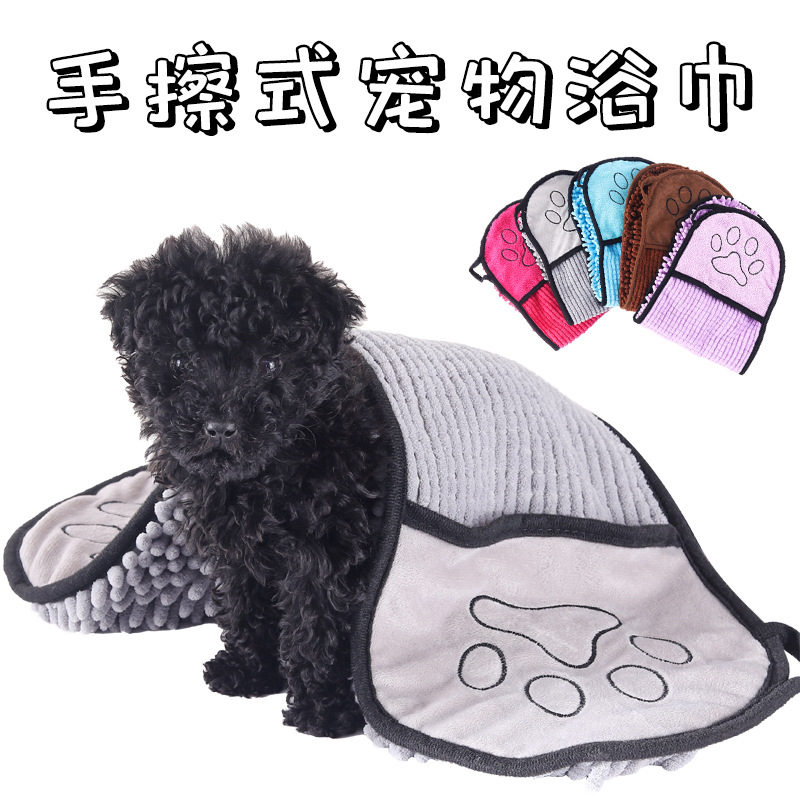 Perlengkapan hewan peliharaan lintas batas chenille sarung tangan handuk mandi kucing anjing handuk mandi penyerap cepat kering handuk mandi