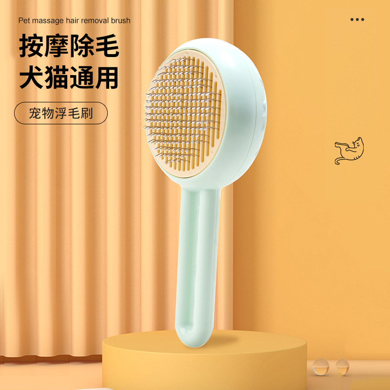 Sisir kucing sisir anjing satu klik, perlengkapan hewan piaraan sisir jarum baja tahan karat sisir rambut mengambang sikat pijat