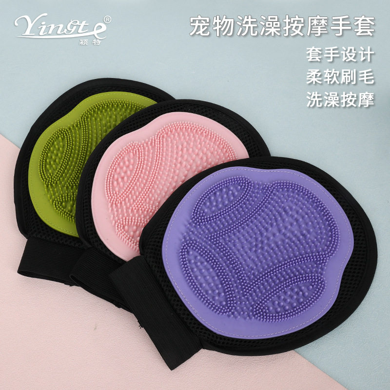Sikat mandi hewan peliharaan sikat mandi silikon khusus sikat pijat sarung tangan mandi sarung tangan mandi anjing artefak