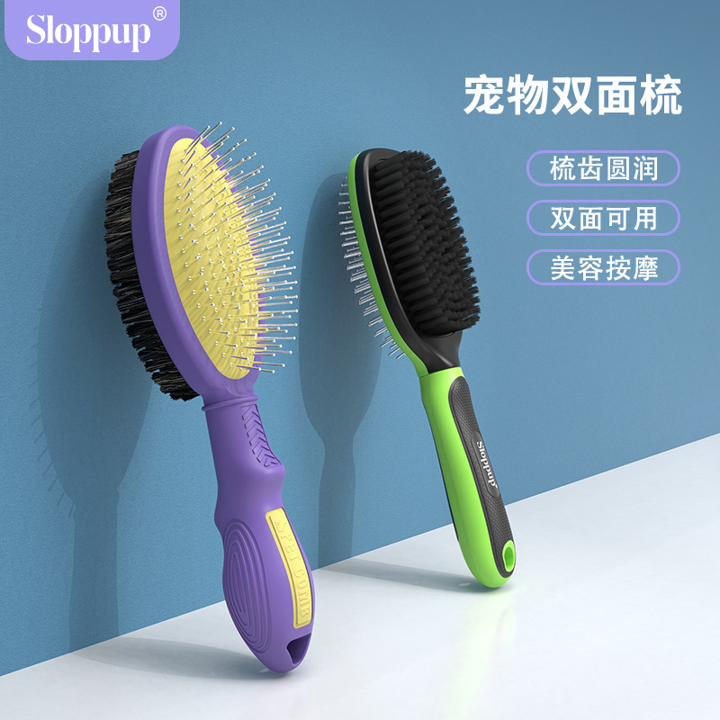 Sisir anjing sisir simpul dua sisi, sisir anjing kucing penghilang bulu kecantikan perlengkapan hewan peliharaan grosir