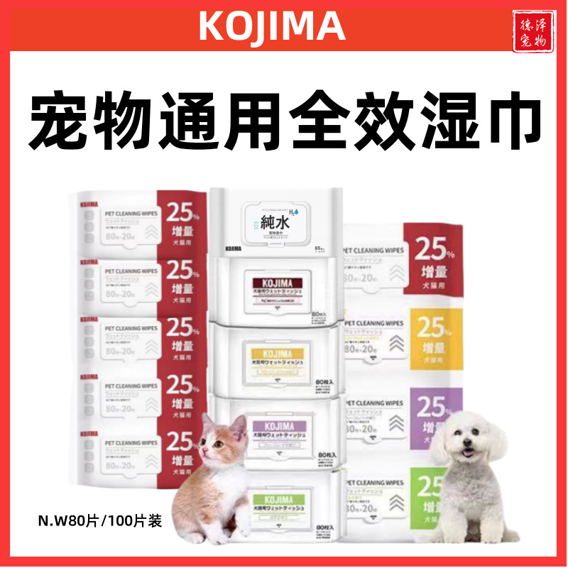 Tisu basah Kojima untuk hewan peliharaan, perlengkapan pembersih, tisu basah Jepang untuk kucing dan anjing kecil untuk membersihkan kaki dan menghilangkan noda, tidak perlu dibilas.
