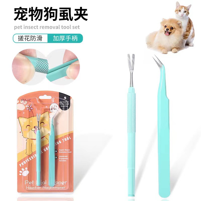 Garpu penghilang kutu anjing klip pembersih kutu tempat kucing ekstraktor kutu keras penjepit pembersih pinset kutu besi tahan karat hewan peliharaan