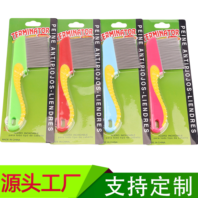 宠物用品工厂跳蚤梳子狗猫清洁梳不锈钢海马梳密齿除蚤去虱梳篦子