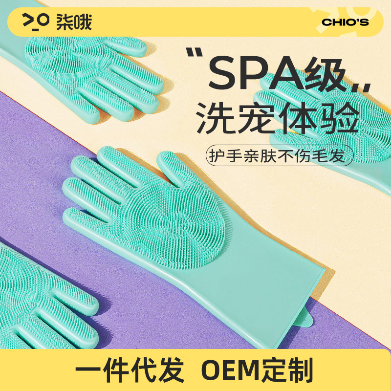 Sarung Tangan Mandi Hewan Peliharaan Alat ajaib mandi anjing dan kucing teddy golden retriever sikat pijat ekstra tebal anti gosok anti gigitan