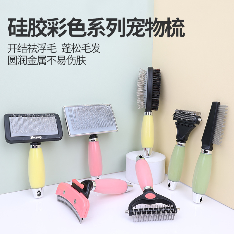 Sisir hewan peliharaan, sisir silikon pegangan simpul penghilang rambut jarum kecantikan sisir rambut kucing sisir anjing