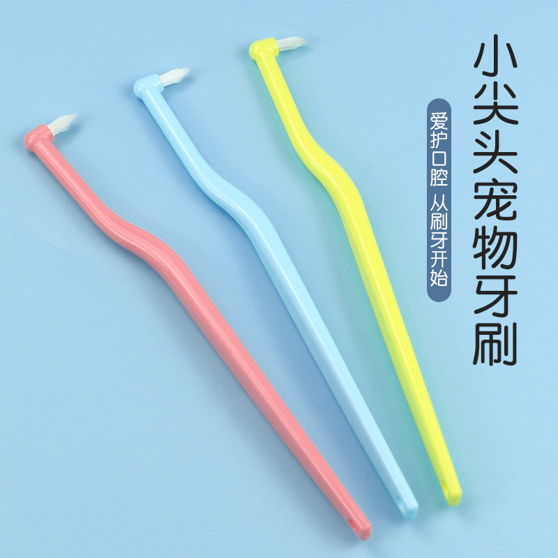 Sikat gigi mulut hewan peliharaan, alat pembersih gigi untuk kucing dan anjing ukuran kecil lembut bulu datar runcing perlengkapan hewan peliharaan