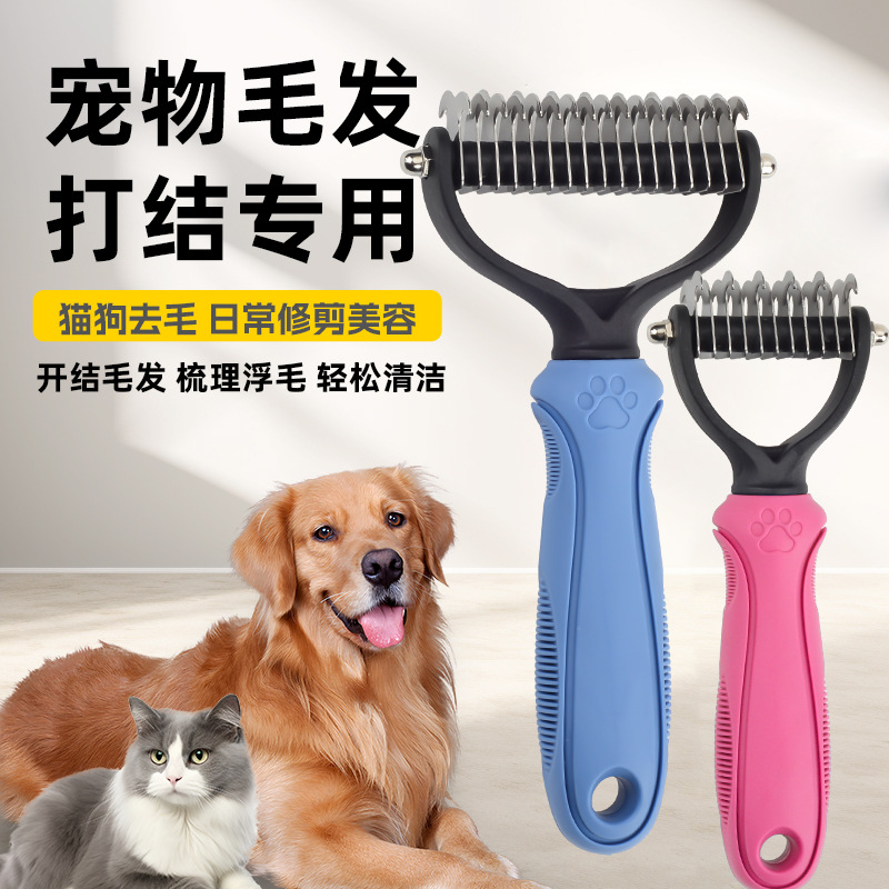 Sisir hewan peliharaan lintas batas, sisir jarum panjang dan pendek, perlengkapan perawatan dan pembersih anjing, sisir bulu anjing baja tahan karat, sisir penghilang bulu kucing