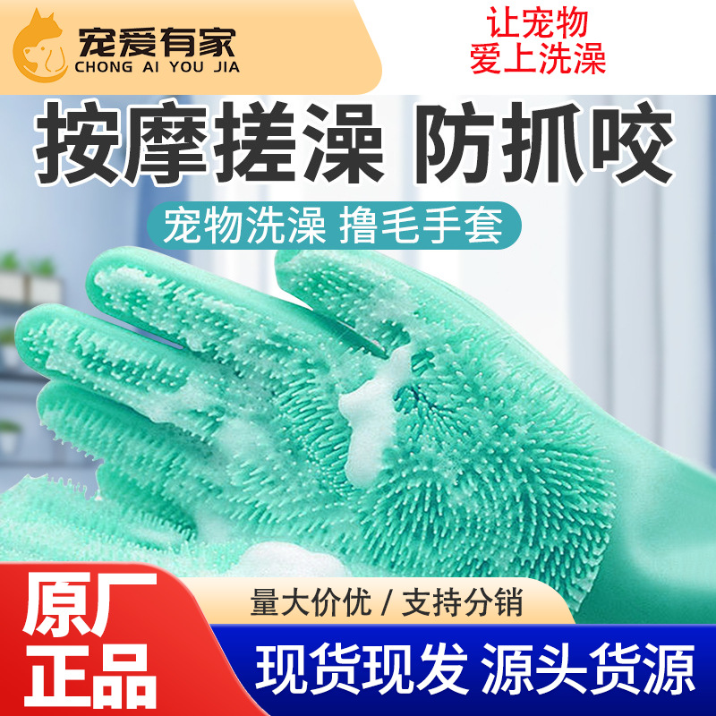 Sarung Tangan Mandi Hewan Peliharaan Anjing Kucing Mandi Teddy Golden Wreer Mandi Sikat Pijat Tebal Anti Genggam Anti Gigitan