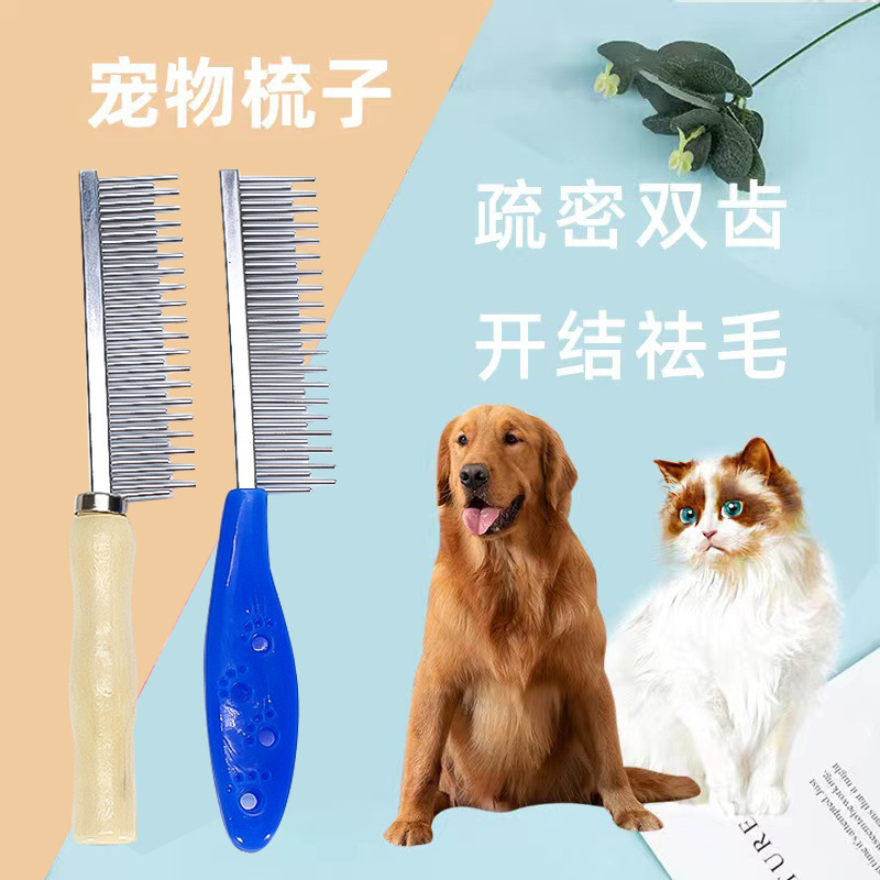 Produk Hewan Peliharaan Kucing dan Anjing Sisir Penghilang Rambut Hewan Peliharaan Sisir Pembuka Hewan Peliharaan Dua Sisi Stainless Steel