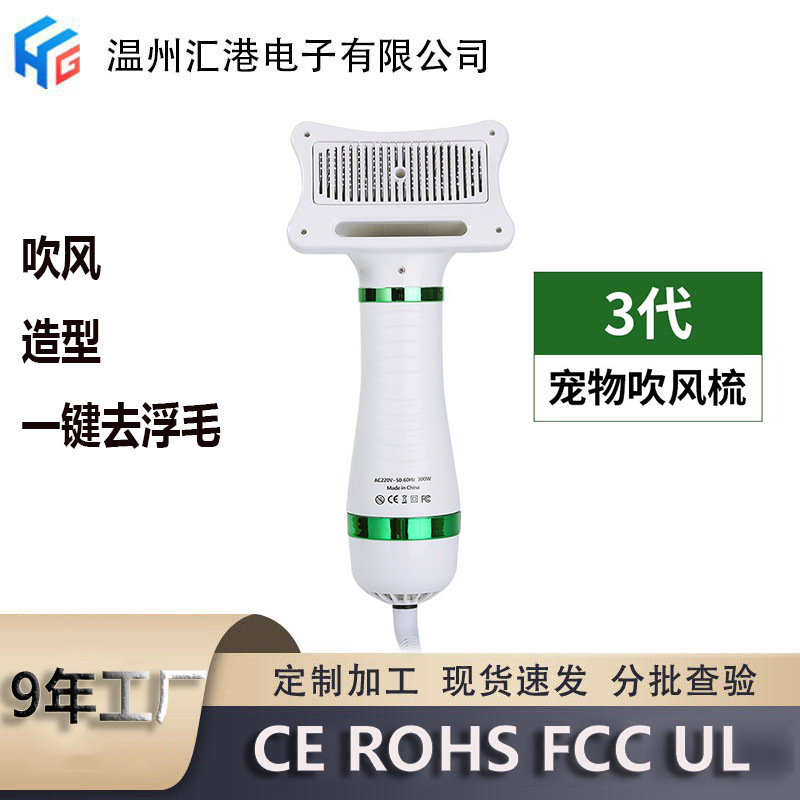 Sisir tiup hewan peliharaan lintas batas sisir udara panas sisir penghilang bulu 2 dalam 1 sisir pengering kucing anjing semua dalam satu mesin perlengkapan hewan peliharaan