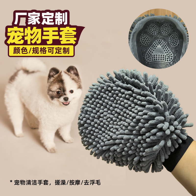 Chenille sikat pembersih sarung tangan mandi hewan peliharaan sarung tangan rol rambut antimengambang anti-gigitan rambut multifungsi