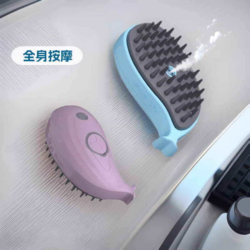 Whale sisir semprot hewan peliharaan, satu klik semprot anti-terbang sisir rambut sikat mandi penghilang rambut perlengkapan hewan peliharaan produsen