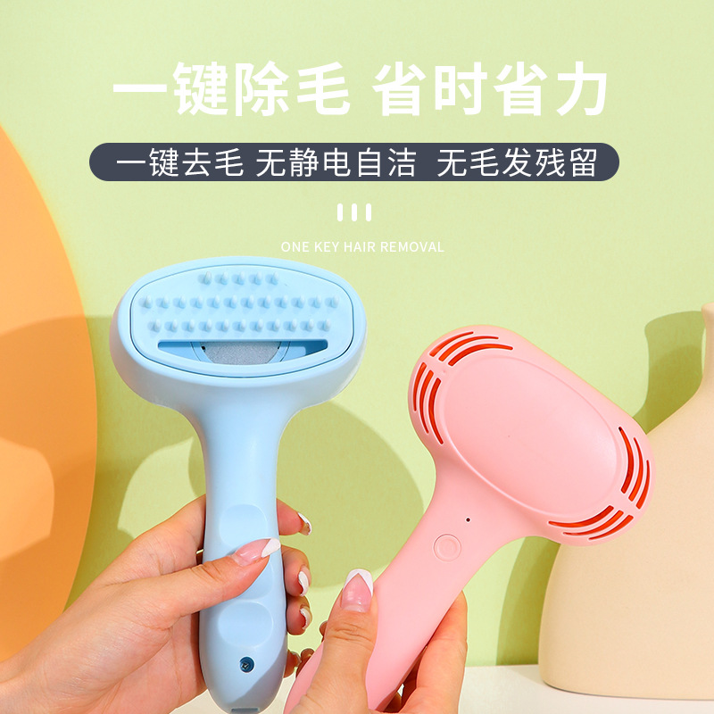 Perlengkapan pembersih hewan peliharaan sisir semprot kucing dan anjing sisir penghilang bulu elektrik hewan peliharaan sisir satu klik semprotan anti-terbang penekan rambut