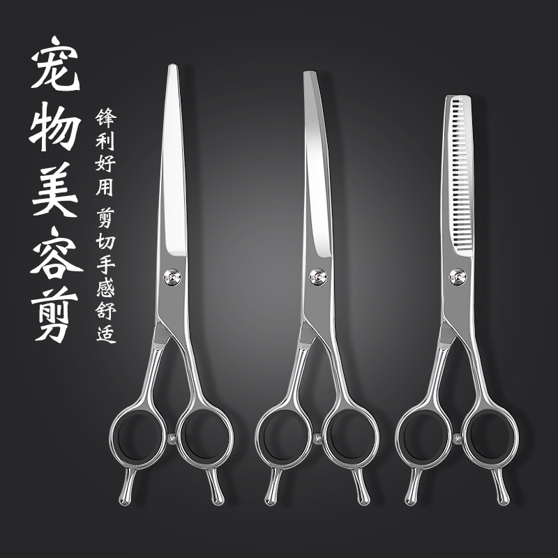 Gunting kecantikan hewan peliharaan gunting melengkung pemangkas rambut anjing dan gunting cukur rambut Teddy kucing alat cukur gunting gigi gunting lurus