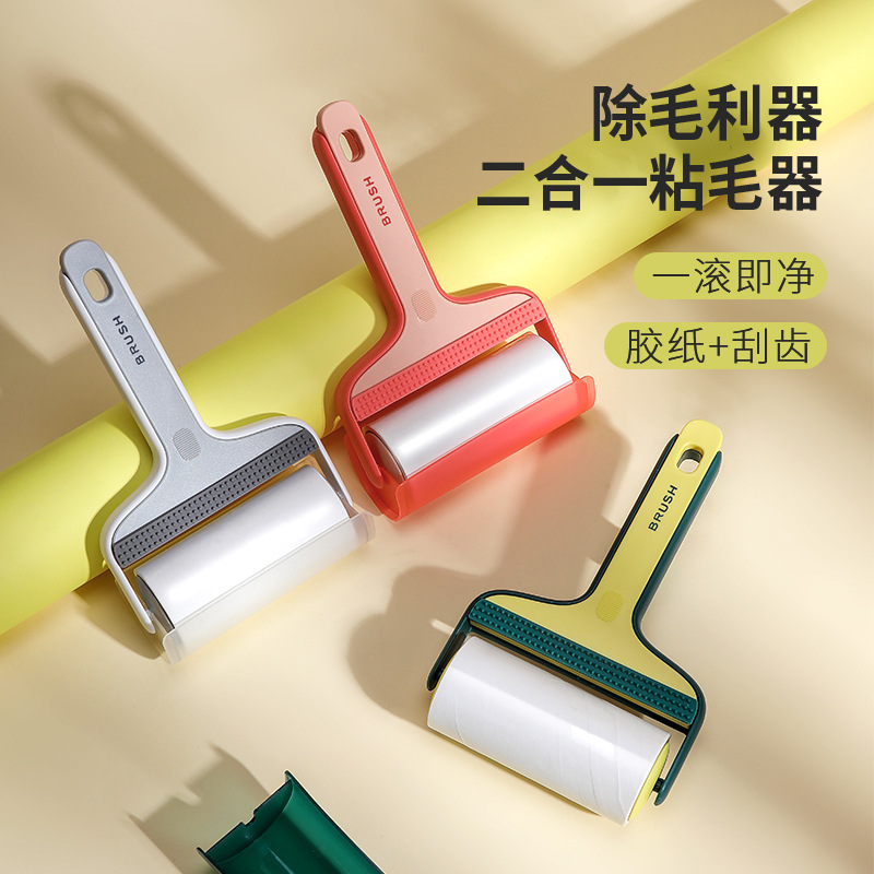 Sikat tempel rambut dua dalam satu, perangkat menempel rambut, kertas tearable, sikat penyedot bulu hewan peliharaan elektrostatis, penghilang debu, lantai, sikat pembersih bulu
