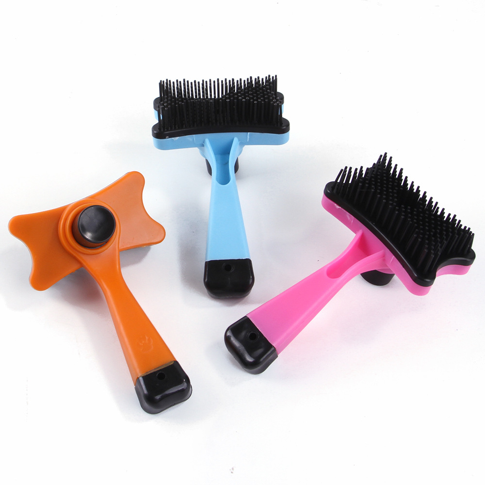 Howo sisir pembersih diri hewan peliharaan grosir sisir pijat universal untuk kucing dan anjing sisir penghilang bulu sikat jarum baja pembersih diri pegangan lembut bulat