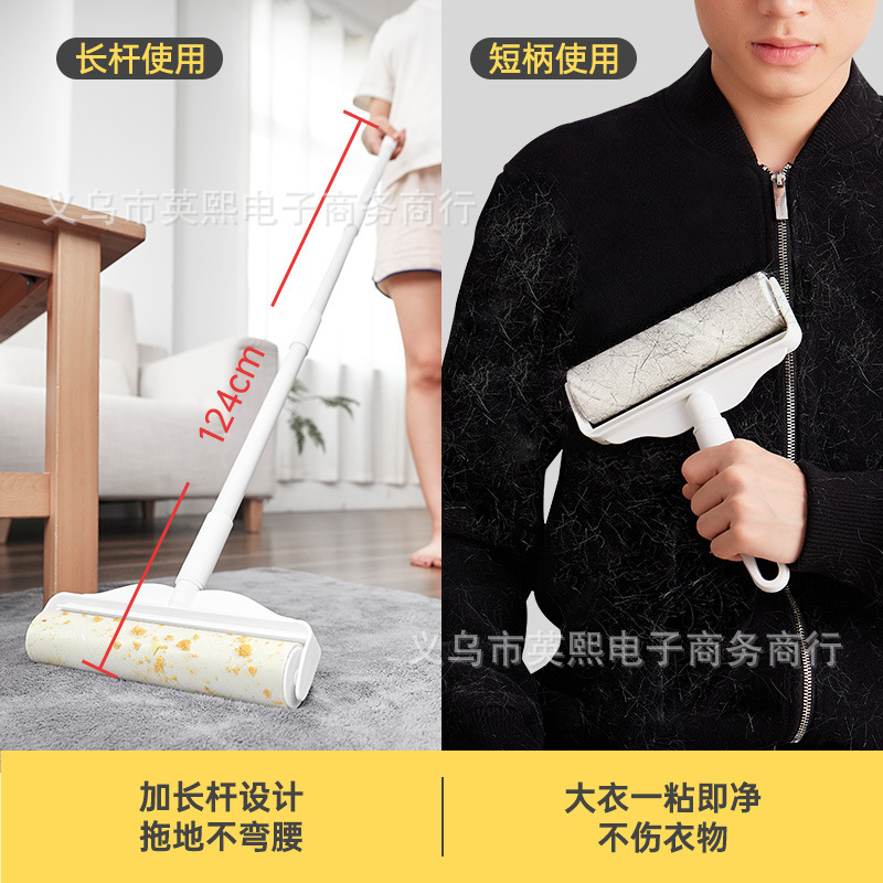 Perangkat perekat rambut kertas rol pegangan panjang batang besar pakaian tidur lantai penyedot debu rambut hewan peliharaan artefak menempel