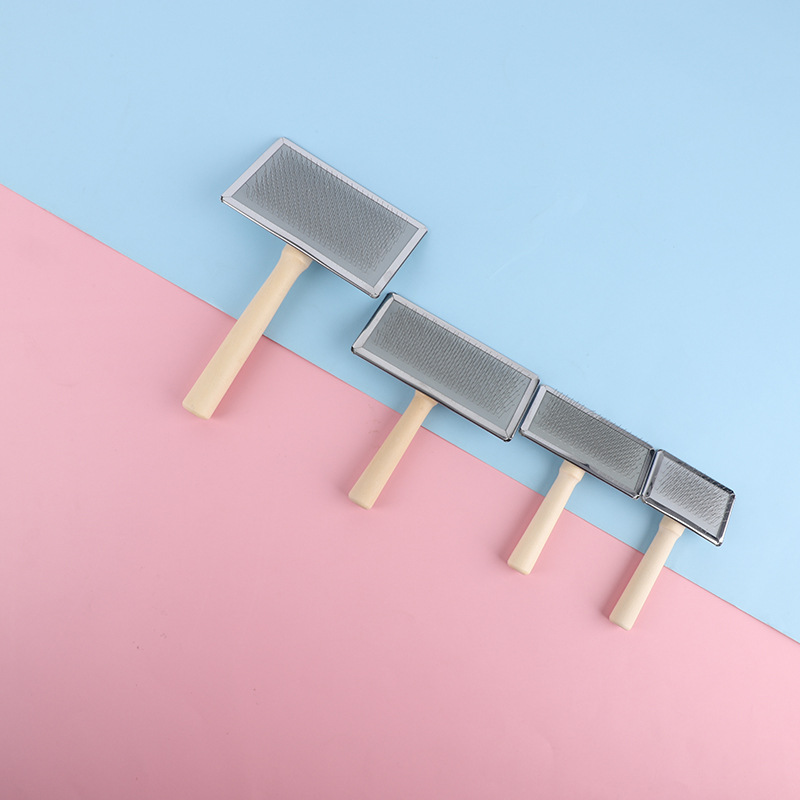 Sisir kecantikan hewan peliharaan sisir penghilang bulu simpul kucing dan anjing sisir jarum pembersih bulu pegangan kayu sikat baja sisir penghilang bulu kucing